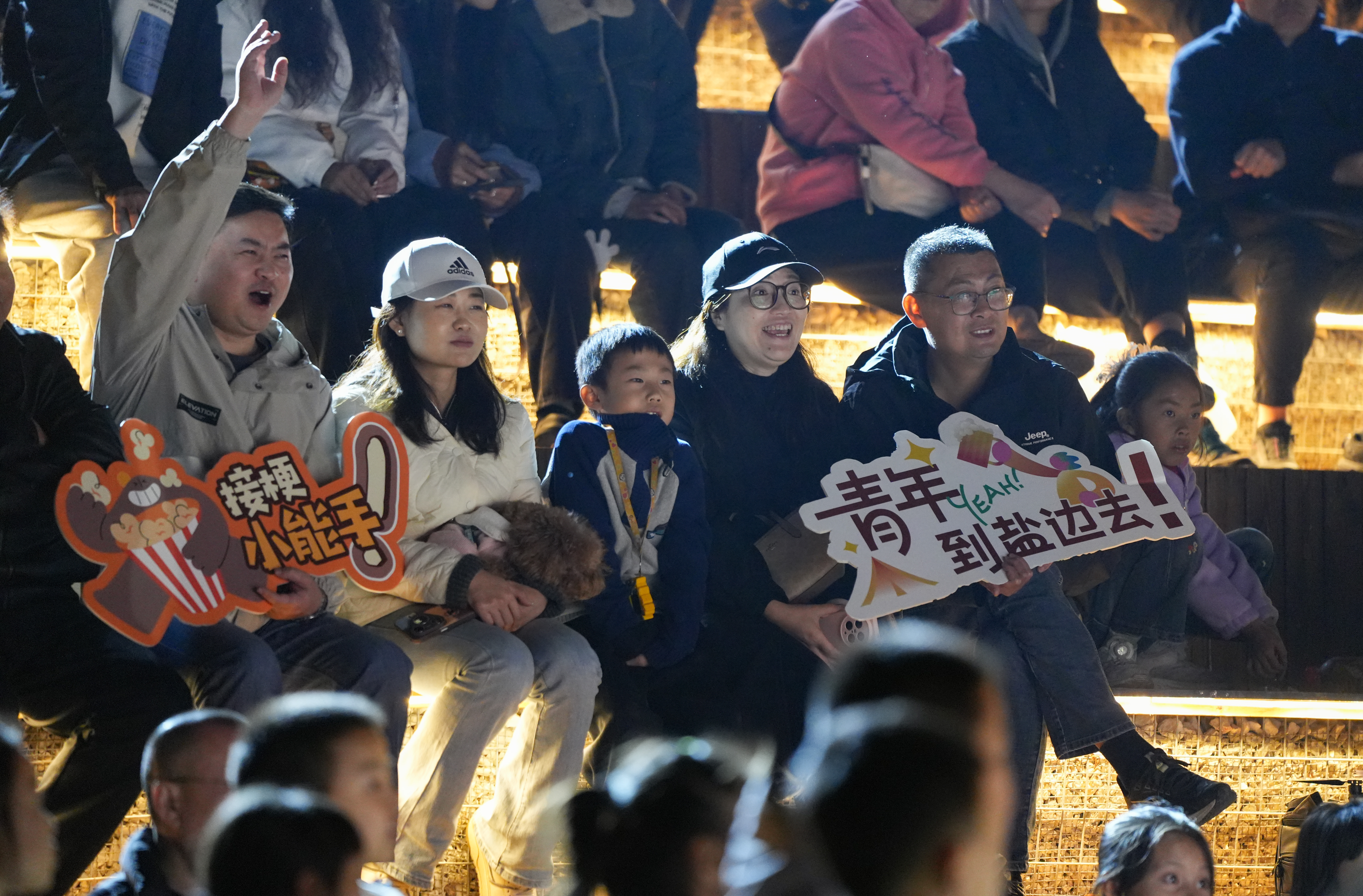 晚上6点半,表演开始。舞台设在村里的大榕树下,观众顺着台阶席地而坐。脱口秀演员陆续上场,幽默的表演和轻松的互动环节,让观众乐在其中,现场笑声不断。